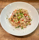 Salmon is marinated in orange juice and spices before being roasted and served with a seriously delicious pineapple salsa which adds acid and heat and brightness. A 4 oz. salmon filet comes with 6 oz. of roasted broccoli. So healthy and so delicious!